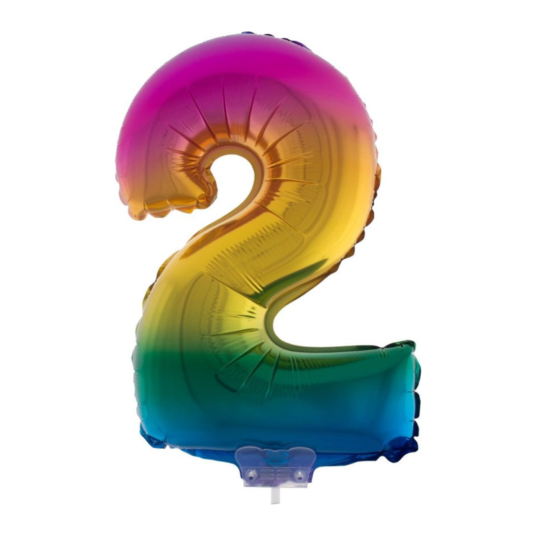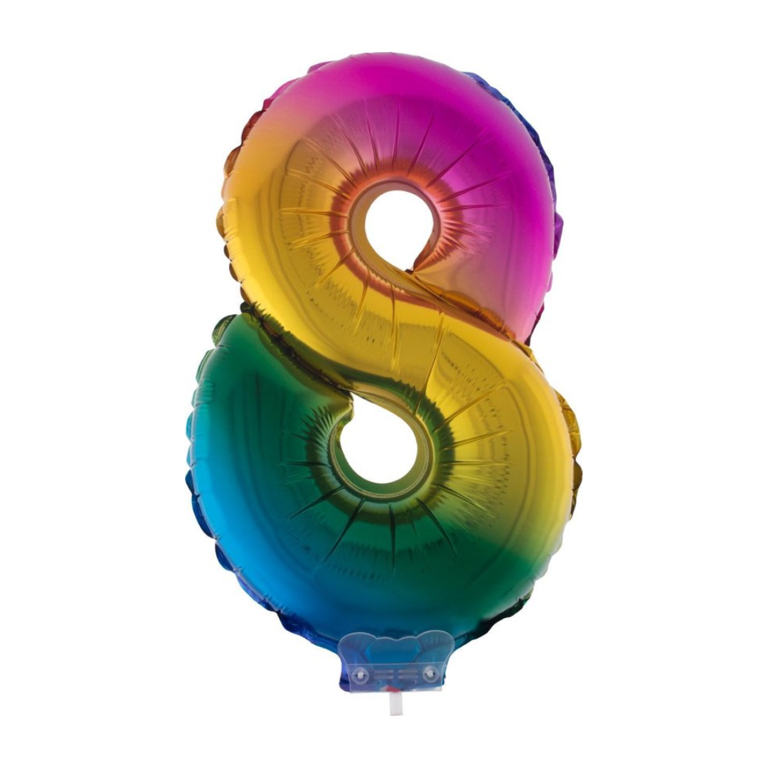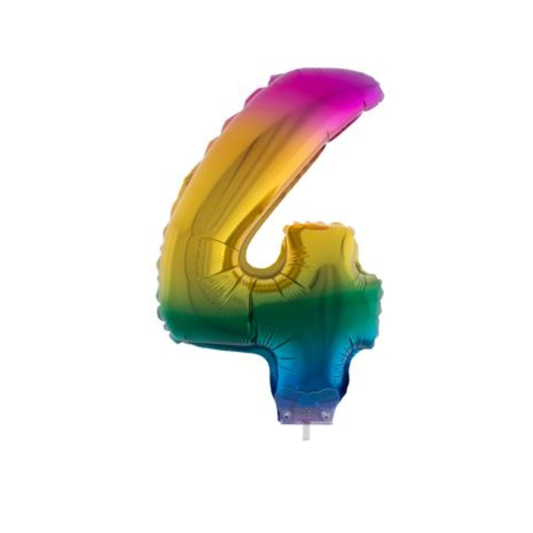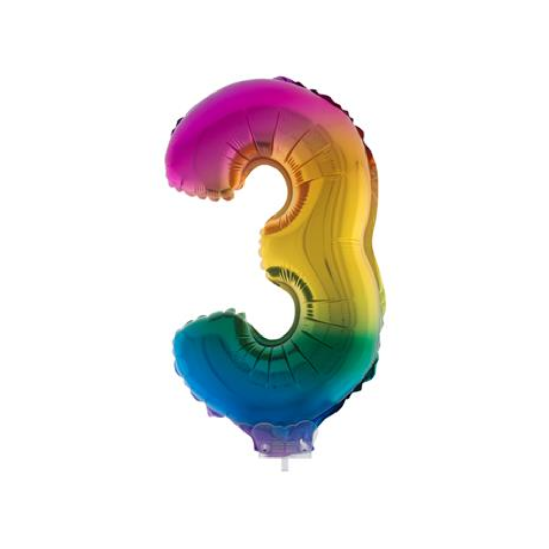 FOLIEBALLON REGENBOOG 12CM MET STOKJE CIJFER