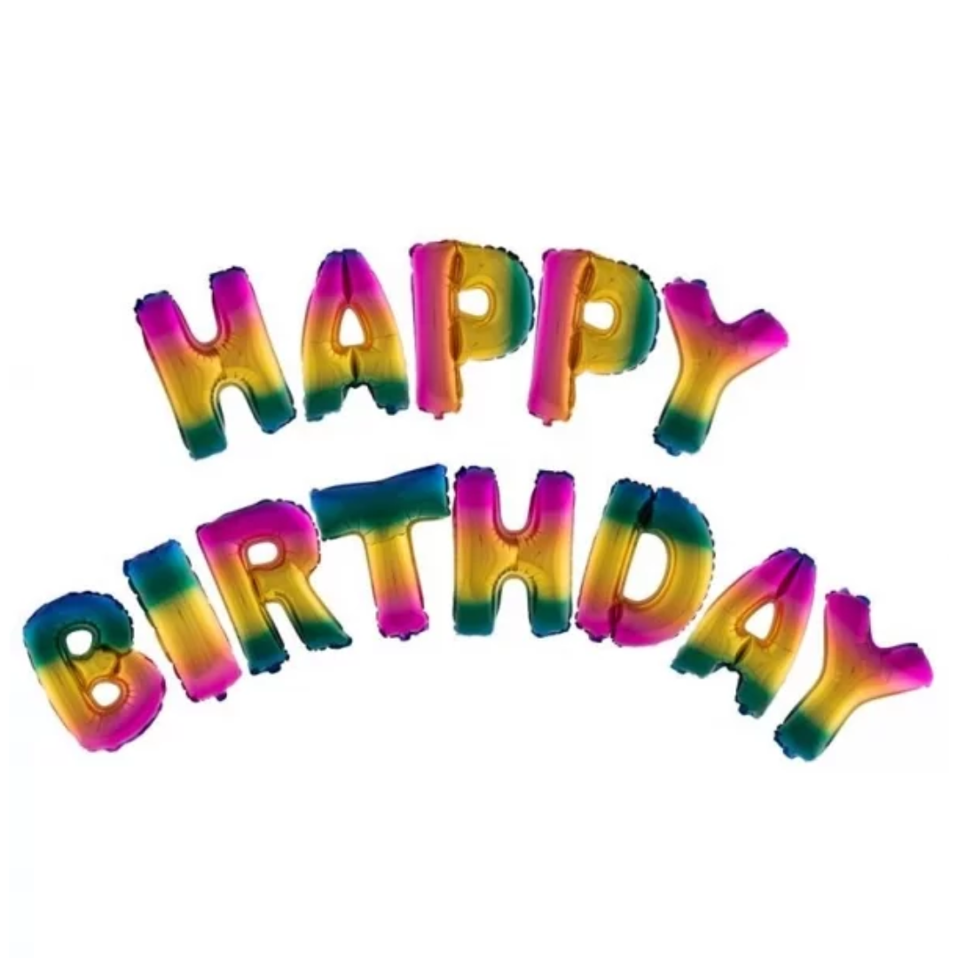 BALLONSET HAPPY BIRTHDAY REGENBOOG M/LINT 5M